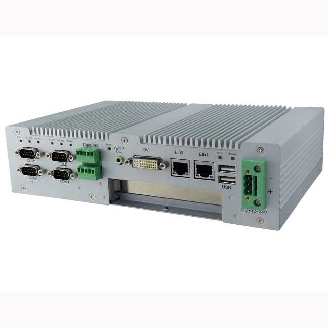 1x Dual COM port 1x DVI-I+DVI-D connector 1x Dual USB3.0+DisplayPort connector 2x Dual USB2.0 + RJ45 connector 1x Audio jack (3 port) 1x 2.5ï¾€ï¾ Removable HDD Tray 1x PCI-E (x16) expansion slot