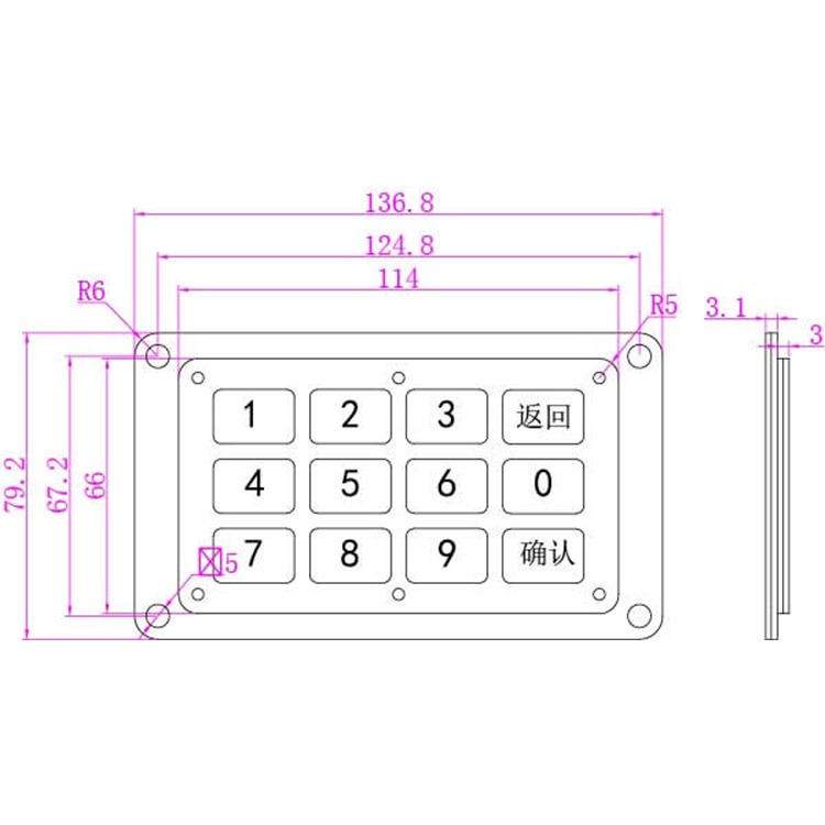 This Panel Mount Keypad is constructed using industrial-grade non-corrosive stainless steel and is designed to meet IP65 specifications.